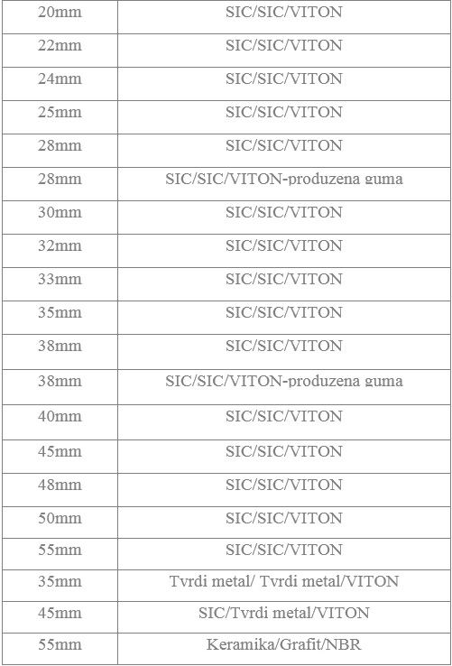 Na datoj tablici se mogu videti sve veličine mehaničkih zaptivača za turbo pumpe kojih imamo u ponudi.